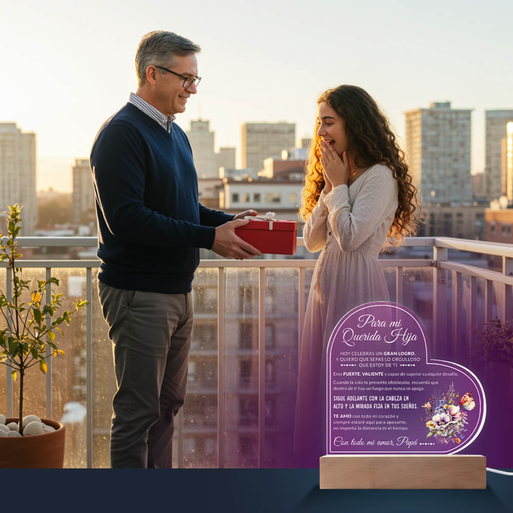 Celebrate your daughter's graduation milestone with this stunning illuminated acrylic heart that speaks directly to her soul. This isn't just a gift—it's a luminous declaration of your endless love and pride.